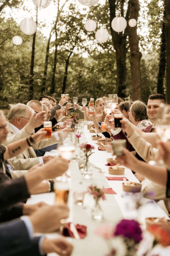 Empfang mit Getränken nach der Zeremonie in einem entspannten Festival-Setting.